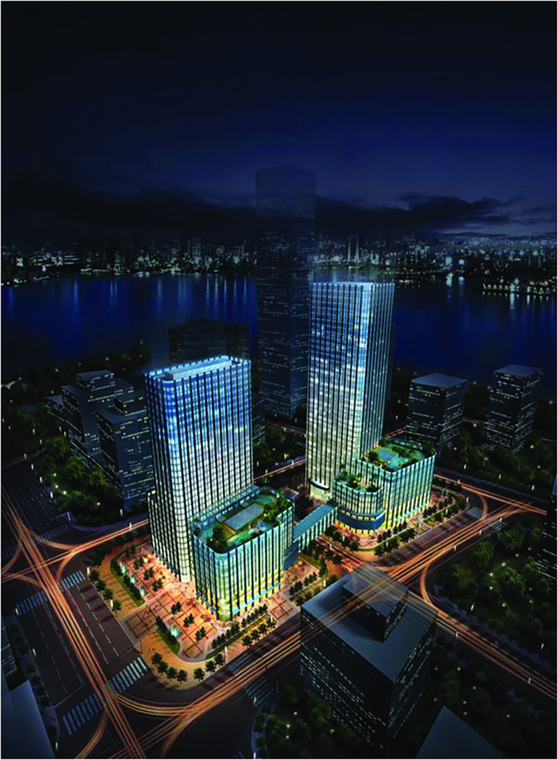 坐落于天津濱海新區響鑼灣中心商務商業區。項目集酒店公寓、商業及辦公樓于一體,總建筑面積18.7萬平米,由兩座分別為120米和150米的超高層塔樓及6-9層裙樓組成。其中辦公樓39層,酒店公寓樓30層。